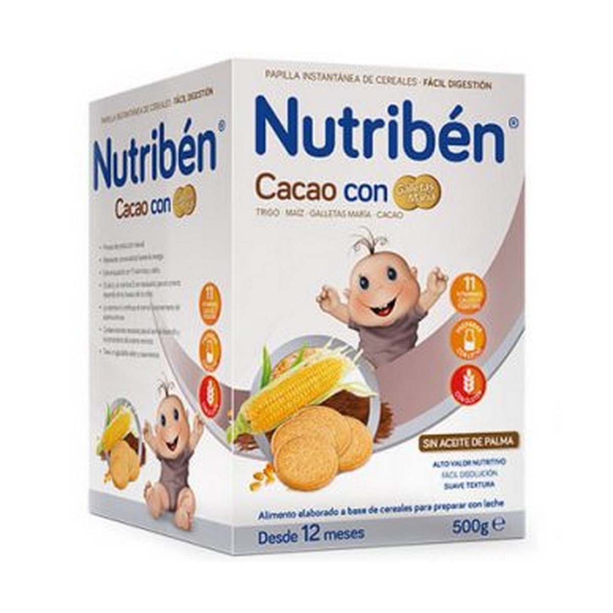 Harina de trigo 51%, azúcar, almidón de mail 9%, galletas maría 14% (harina de trigo, almidón de trigo, extracto de malta, aceites vegetales (girasol y oliva), gasificantes, emulgente (lecitina de soja) y antioxidante (extracto rico en tocoferoles)), cacao desgrasado en polvo 5%, sales minerales (fosfato bicálcico), vitaminas (C, niacina, E, ácido pantoténico, B1, B6, A, ácido fólico, K1, biotina, D3) y aromas (cacao y vainillina).