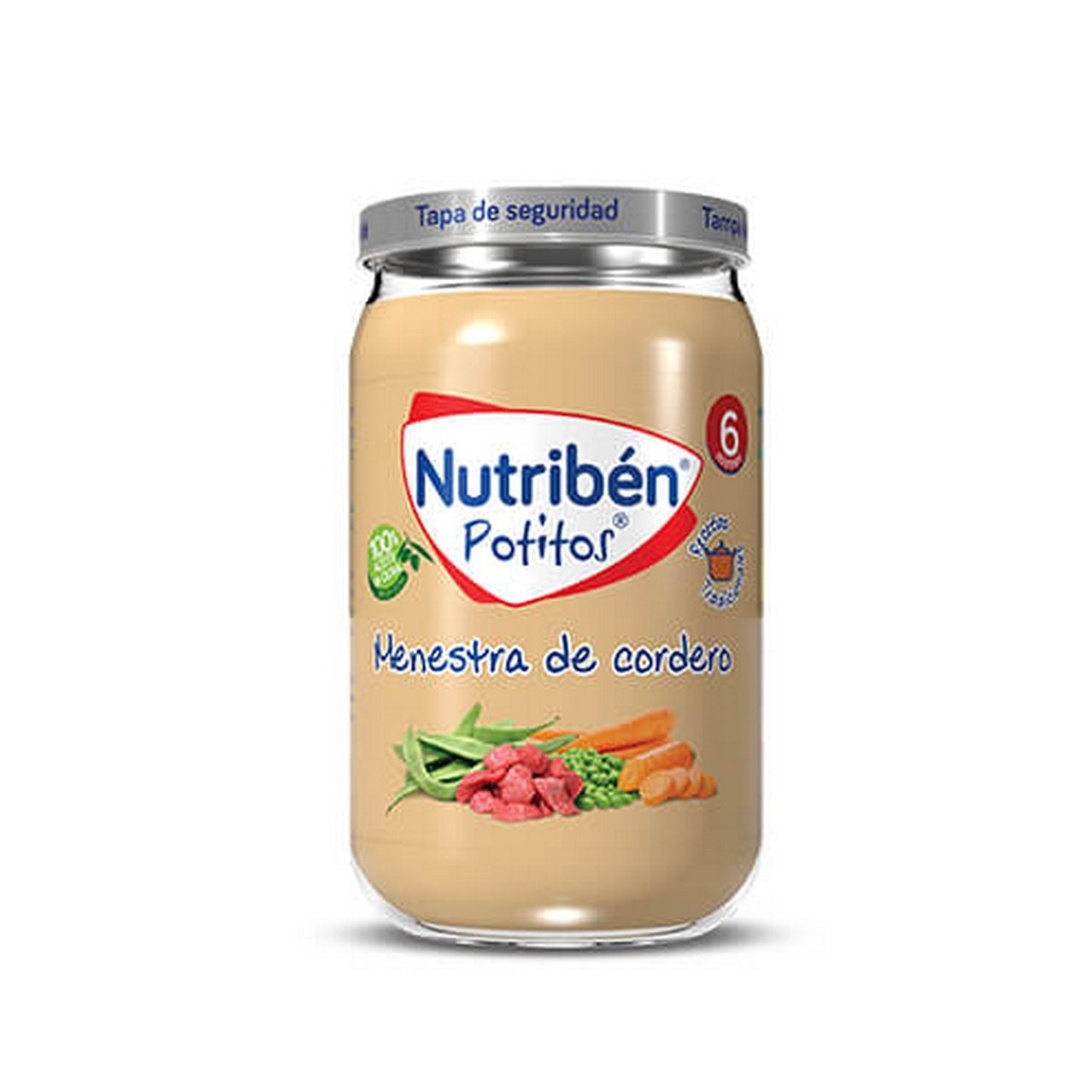 Al abrir la tapa oirá un "pop", garantía de la calidad del potito. Una vez abierto caliente al baño maría o en el microondas sin tapa. Remueva y compruebe la temperatura antes de dárselo al niño. No añadir sal. Una vez abierto se conserva 24 horas en el frigorífico. Presérvese del sol.