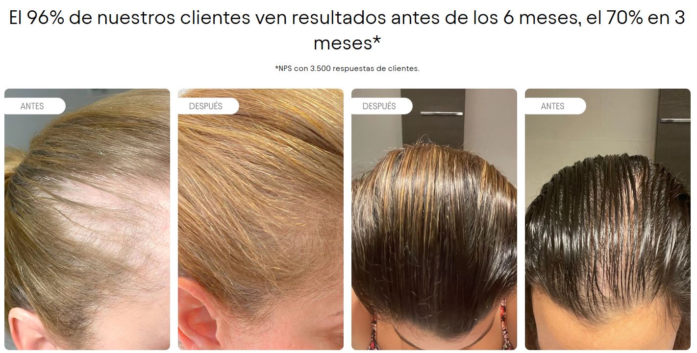 Aún así, la mayoría nota mayor cantidad y volumen de pelo a partir de los 3 meses. Sin embargo, desde el primer mes, podrás notar una reducción notoria de la caída del pelo.