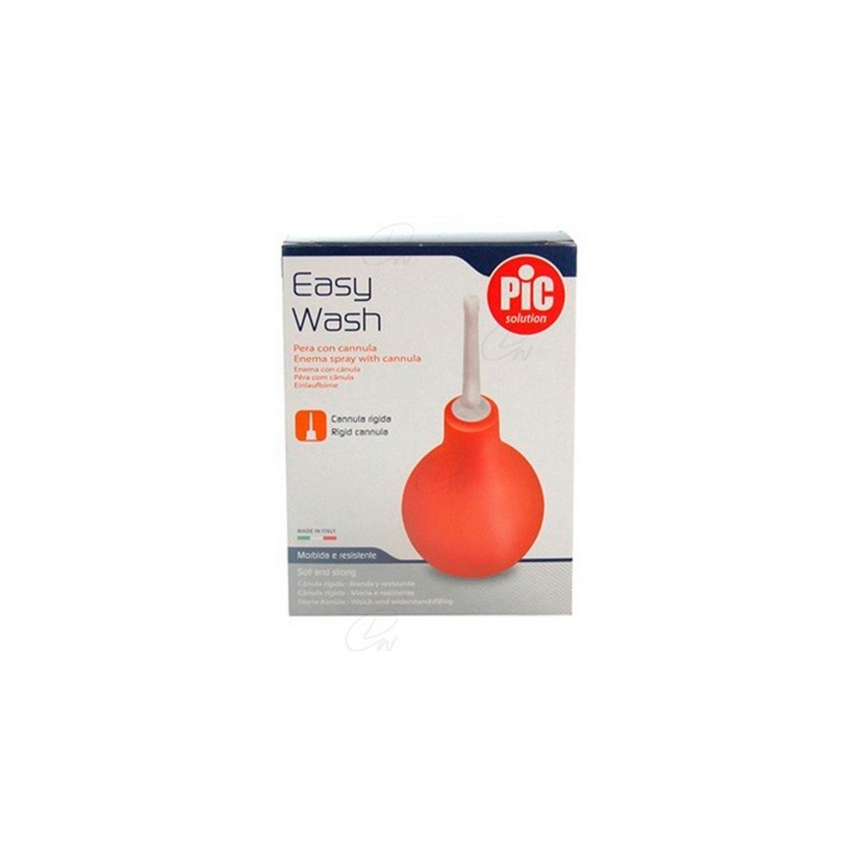 Sistema para lavado intestinal mediante irrigador. La cánula rígida es de moplen.