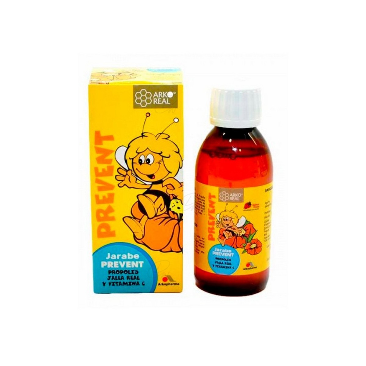 Própolis: 28% de extracto acuoso obtenido a partir de 130 mg. Azúcar, jarabe de fructosa, maltodextrina, miel de acacia. Jalea real (1,9% de sea 250 mg), vitamina C, aroma de fresa, conservante: sorbato de potasio, colorante E120.