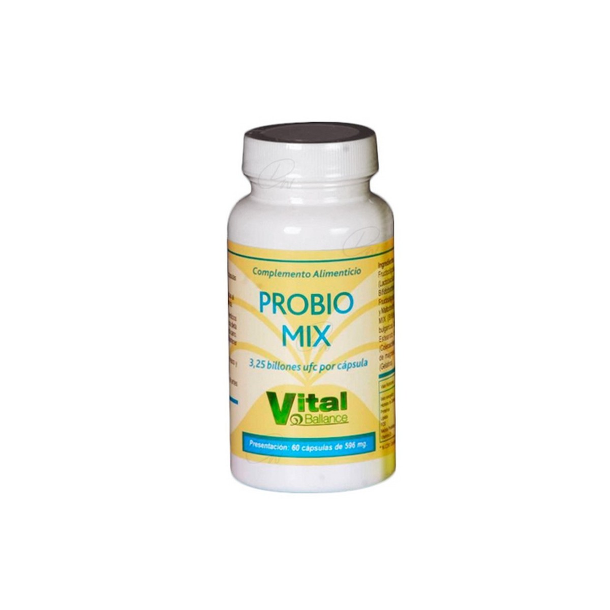 Fructooligosacáridos 235 mg, Mezcla probiótica (Lactobacillus acidophilus, Bifidobacterium longum, Bifidobacterium bifidum, Bifidobacterium lactis, Fructooligosacáridos (FOS), Estearato de magnesio y Maltodextrina) 200 mg, Mezcla probiótica PROBIOMIX (Bifidobacterium longum, Lactobacillus bulgaricus La-5, BB12, Maltodextrina, Dextrosa y Estearato de magnesio) 50 mg, Vitamina D (Colecalciferol) 1 mg, Antiaglomerantes (Estearato de magnesio y Dióxido de silicio) y Envoltura (Gelatina).