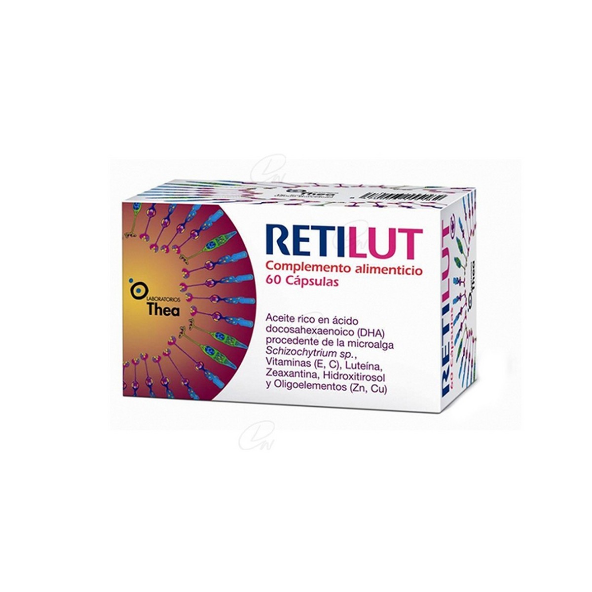 Aceite rico ácido docosahexaenoico (DHA) procedente de la microalga Schizochytrium sp, ácido ascórbico, gluconato de zinc, emulgente (monoestearato de glicerilo), luteína zeaxantina, DL-alfa-tocoferilo, extracto de fruto de Olea europea, zeaxantina, sulfato de cobre.