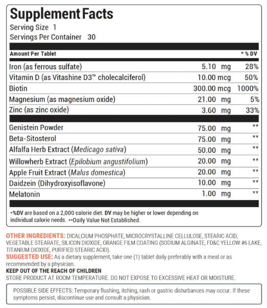 Como factor diferencial frente a otros complementos nutricionales indicados para tratar la alopecia androgenética, Revita Tabletas incorpora melatonina como potente antioxidante y modulador del crecimiento del cabello, atenuando el estrés oxidativo del folículo piloso, lo que se traduce en una menor perdida y una mayor estimulación del crecimiento.