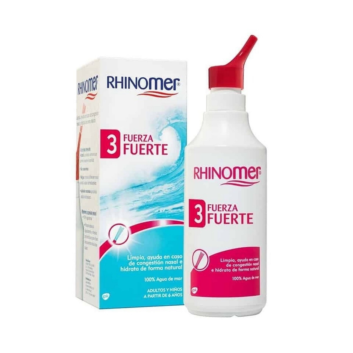 Rhinomer es agua de mar estéril que limpia, ayuda en caso de congestión e hidrata las fosas nasales. Tras su obtención en el mar, se reduce su contenido en sal para una buena tolerancia por la mucosa nasal, pero preservando todos los minerales y oligoelementos del agua de mar (potasio, calcio, magnesio, etc.) que tan beneficiosos son para el buen funcionamiento de las fosas nasales.