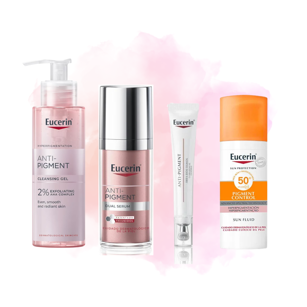 - Eucerin Gel Limpiador Anti-Pigment 400ml: limpia y al mismo tiempo exfolia la superficie de las manchas para que se eliminen más rápido.