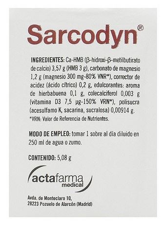 Tomar 1 sobre de Sarcodyn al día diluido en abundante agua o zumo.
