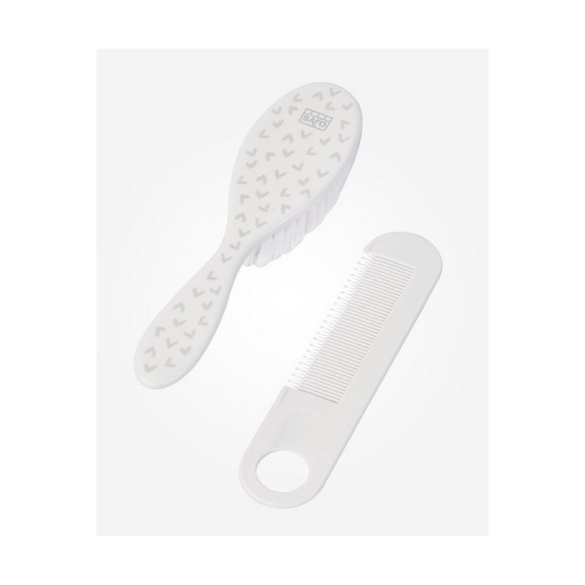 El cepillo tiene cerdas sintéticas y el peine está provisto de púas redondeadas para mayor seguridad del bebé.