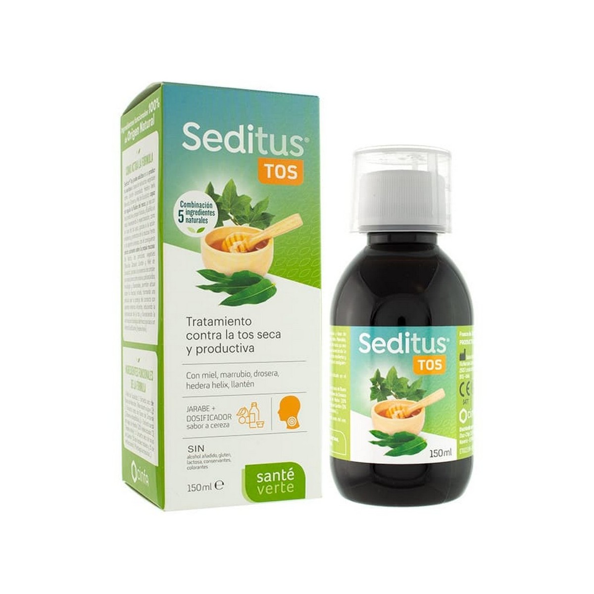 Seditus Tos jarabe adultos es un producto sanitario a base de extractos vegetales como Llantén lanceolado, Hedera heliz, Marrubio, Drosera y Miel de Eucalipto, capaz de regular la fluidez del moco, ya sea con tos productiva (porque hidrata y fluidifica el moco favoreciendo la expectoración) como en casos de tos seca (gracias a la acción emoliente y protectora de la mucosa frente a los agentes externos).