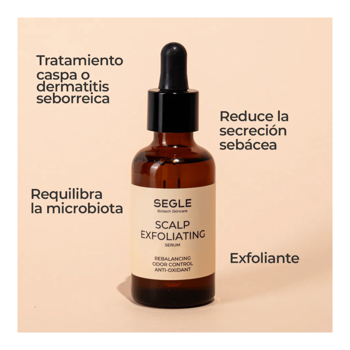 - Sérum exfoliante que elimina la acumulación de producto, sebo y células muertas y prepara el cuero cabelludo para otros tratamientos posteriores.