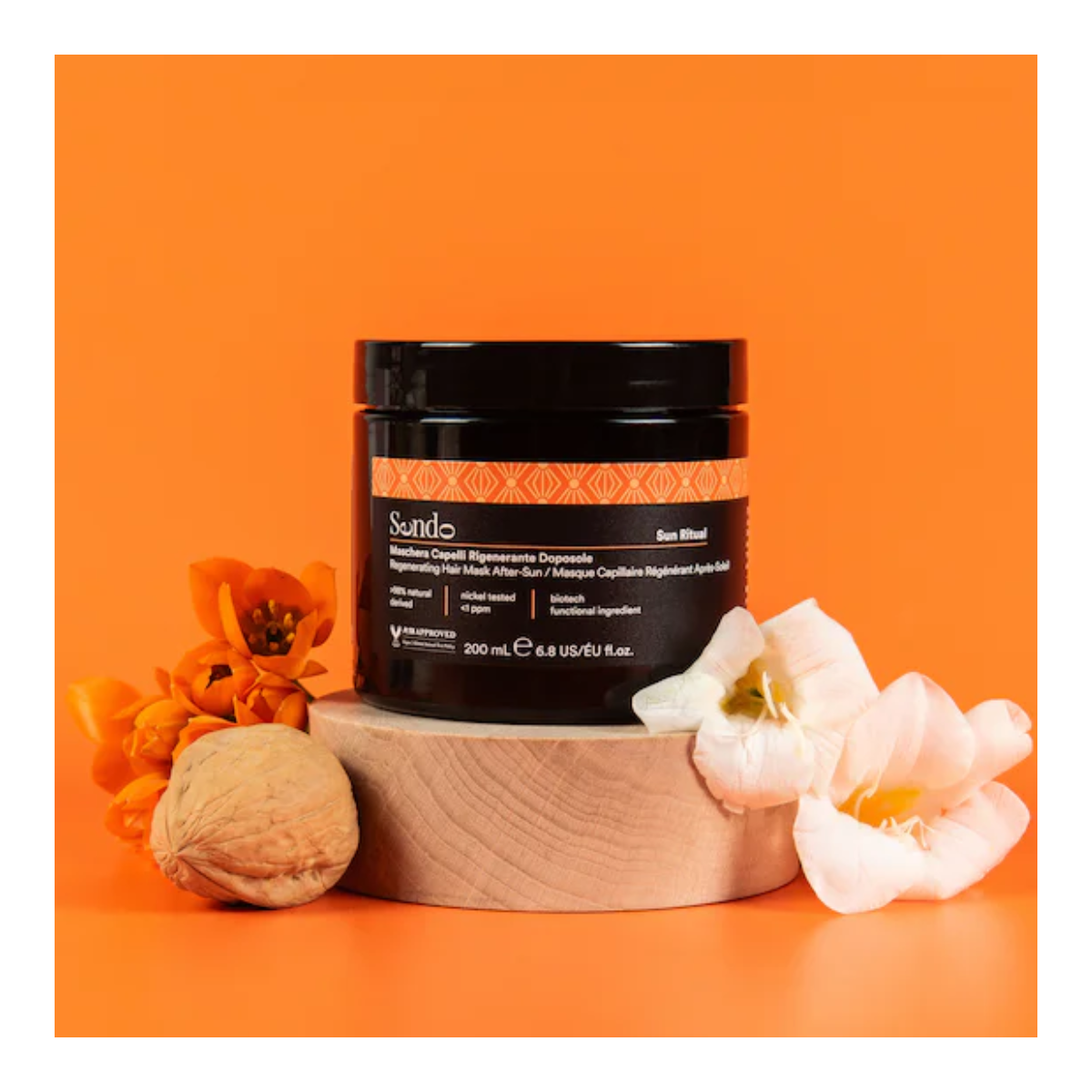 Sun Ritual es la rutina haircare formulada por Sendo para nutrir el cabello expuesto al sol, la sal o el cloro, aportándole brillo e hidratación.