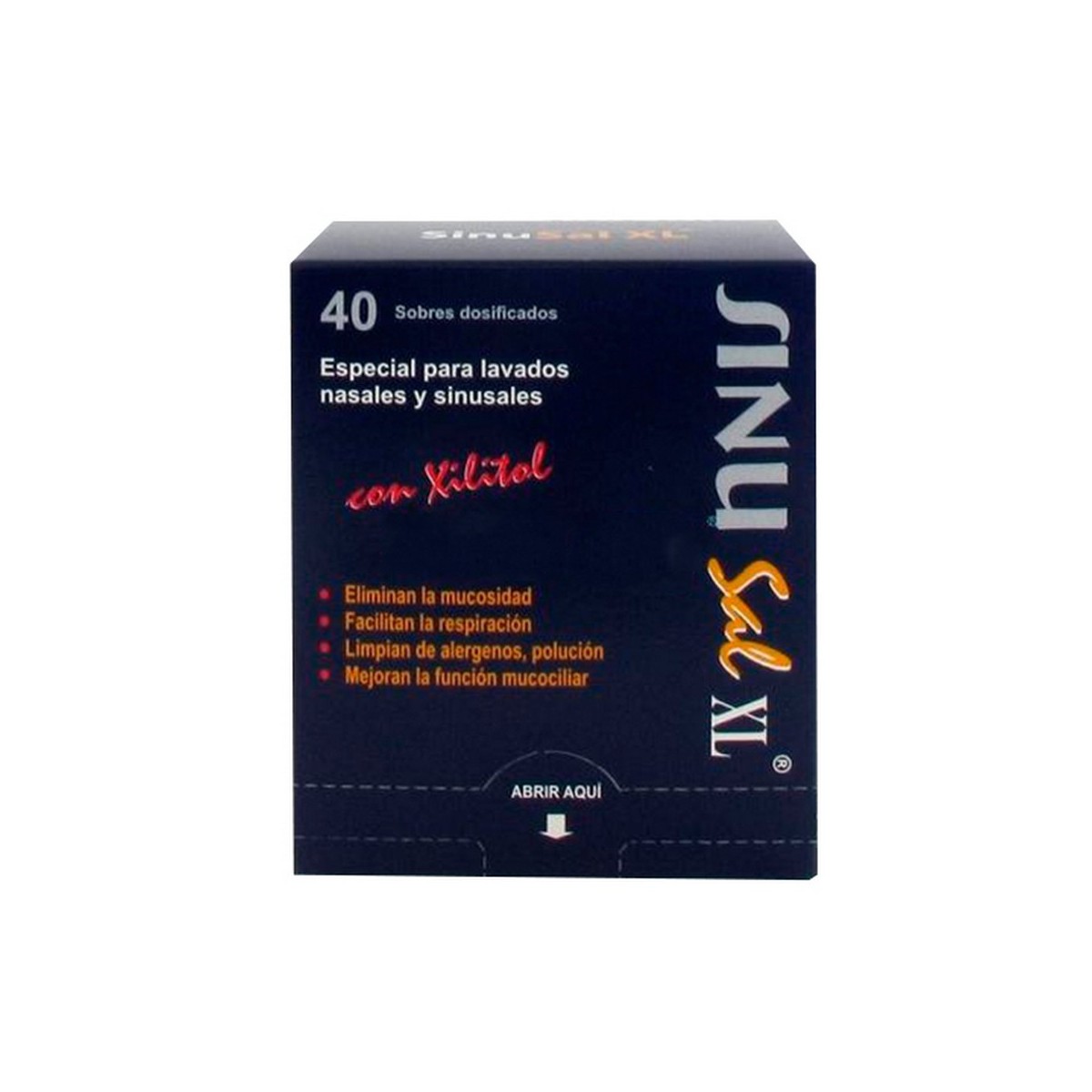Mezcla de sales para la preparación extemporánea de solución tamponada, especialmente formulada para la irrigación nasal. Cada sobre (5 g) permite hacer 500 ml de solución de irrigación. La solución se prepara añadiendo un sobre dosificador a 500 ml de agua potable o agua destilada para irrigación. No contiene antiapelmazantes ni conservantes. El xilitol hace la irrigación más confortable, y favorece la limpieza nasal.