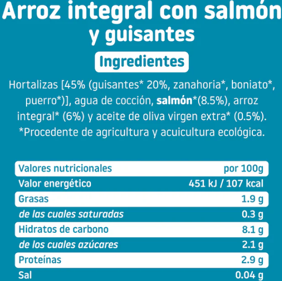 Tarrito elaborado con una materia prima de calidad de agricultores y acuicultores seleccionados, manteniendo el sabor y la textura original.