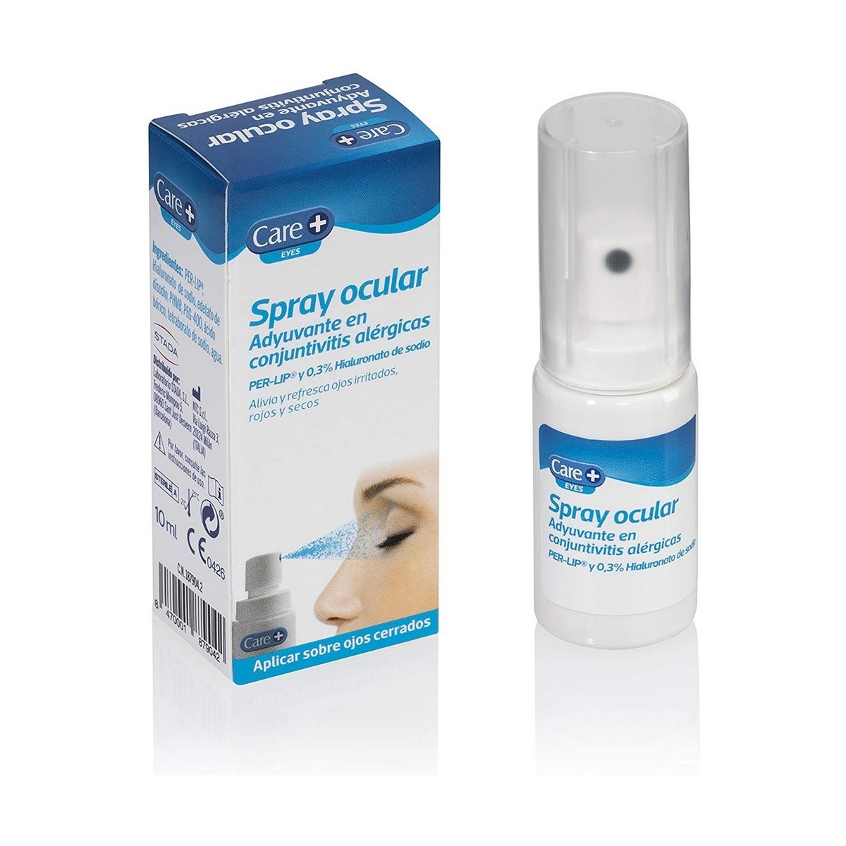 Puede usarse en terapias antihistamínicas. Care+ Spray Ocular, usado como adyuvante en el tratamiento de la conjuntivitis alérgica, restaura la homeostasis de la superfie ocular y la película lagrimal, alterada por los alérgenos, el polvo, la exposición al viento o a la contaminación, el estrés ambiental como el aire acondicionado o la fatiga ocular debida al uso prolongado de lentes de contacto, ordenadores y condiciones adversas de iluminación, etc.