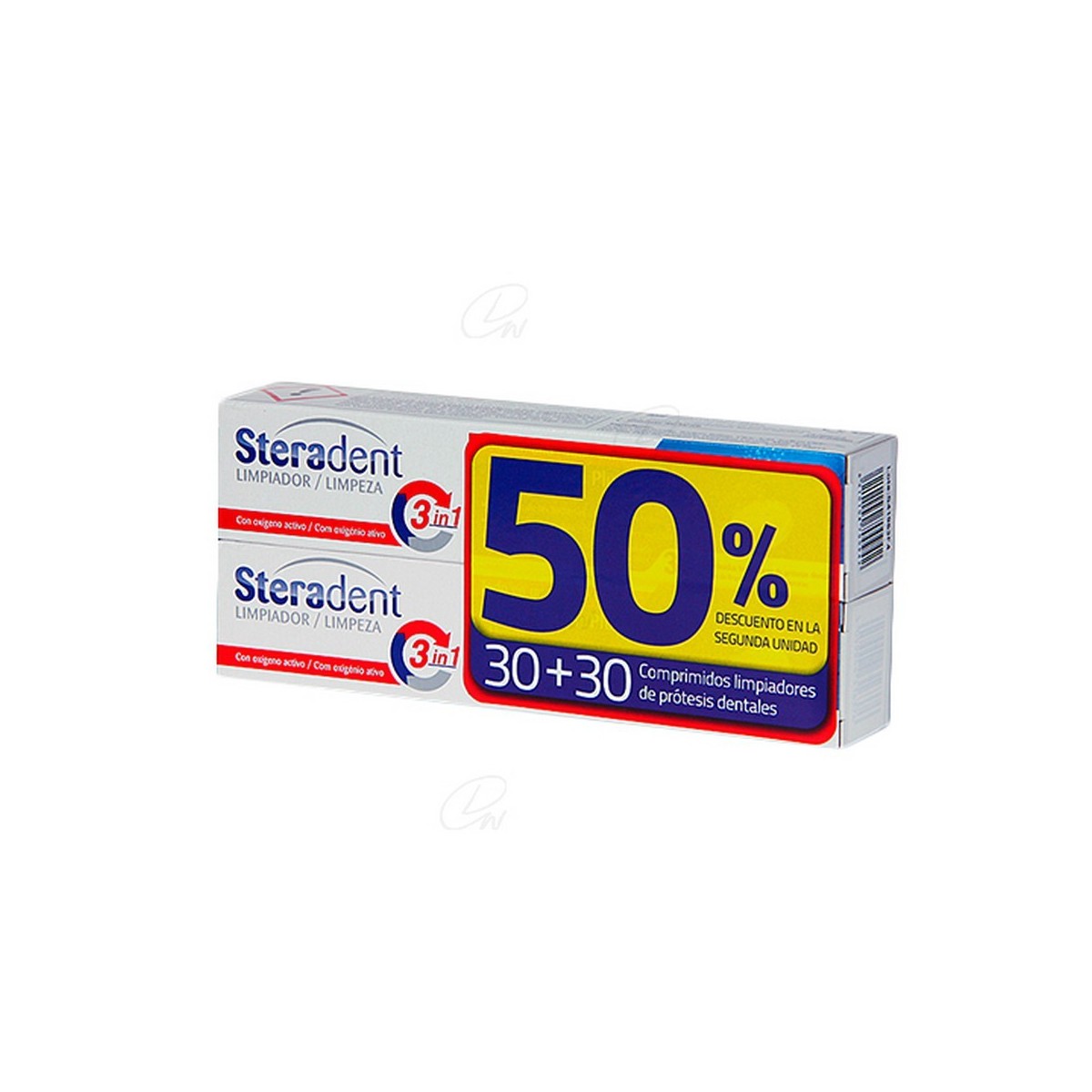 Comprimidos efervescentes que limpian y cuidan las prótesis dentales. Su fórmula triple acción limpia en profundidad, eliminando la placa y las manchas y elimina las bacterias que provocan el mal aliento.