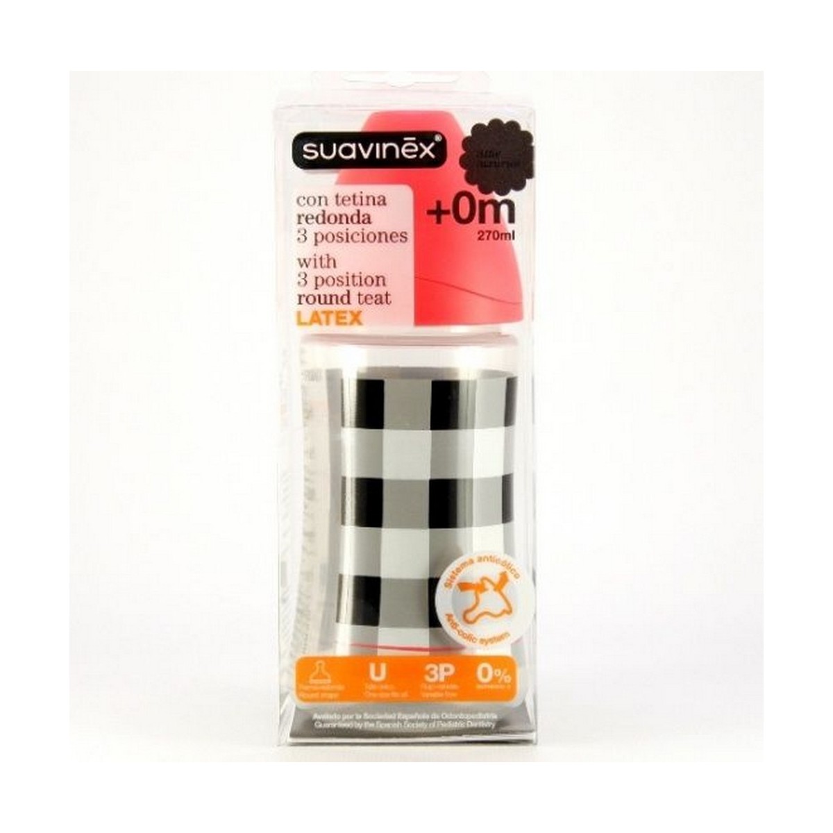 Suavinex Biberón con Tetina Redonda 3 Posiciones de Látex 270 mL 0 meses