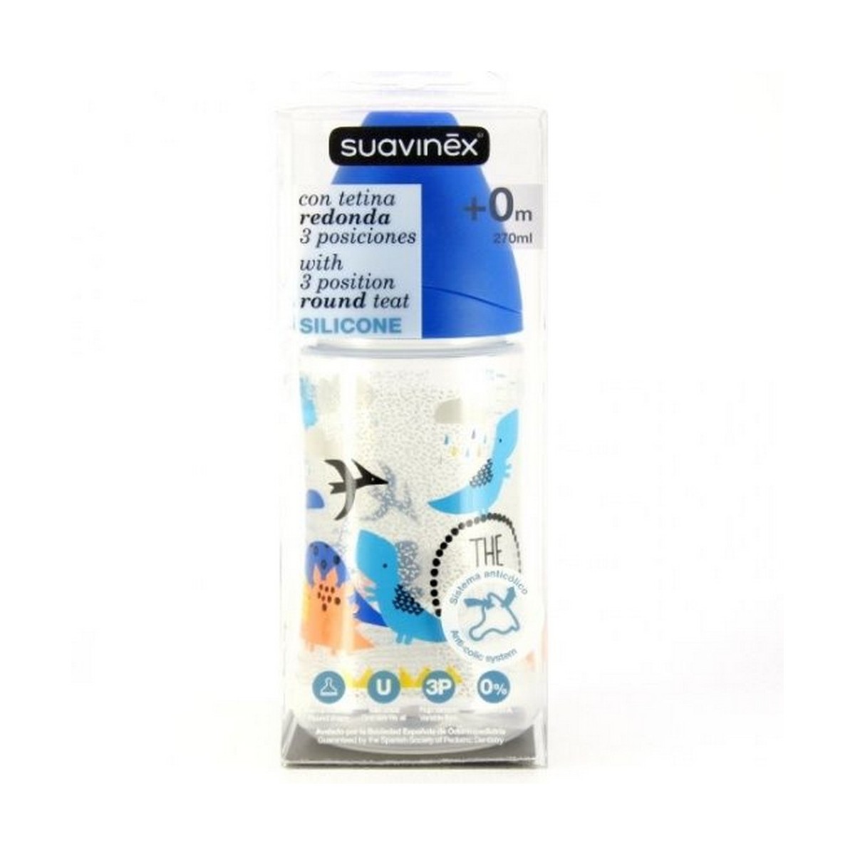Suavinex Biberón con Tetina Redonda 3 Posiciones de Silicona 270ml 0 meses