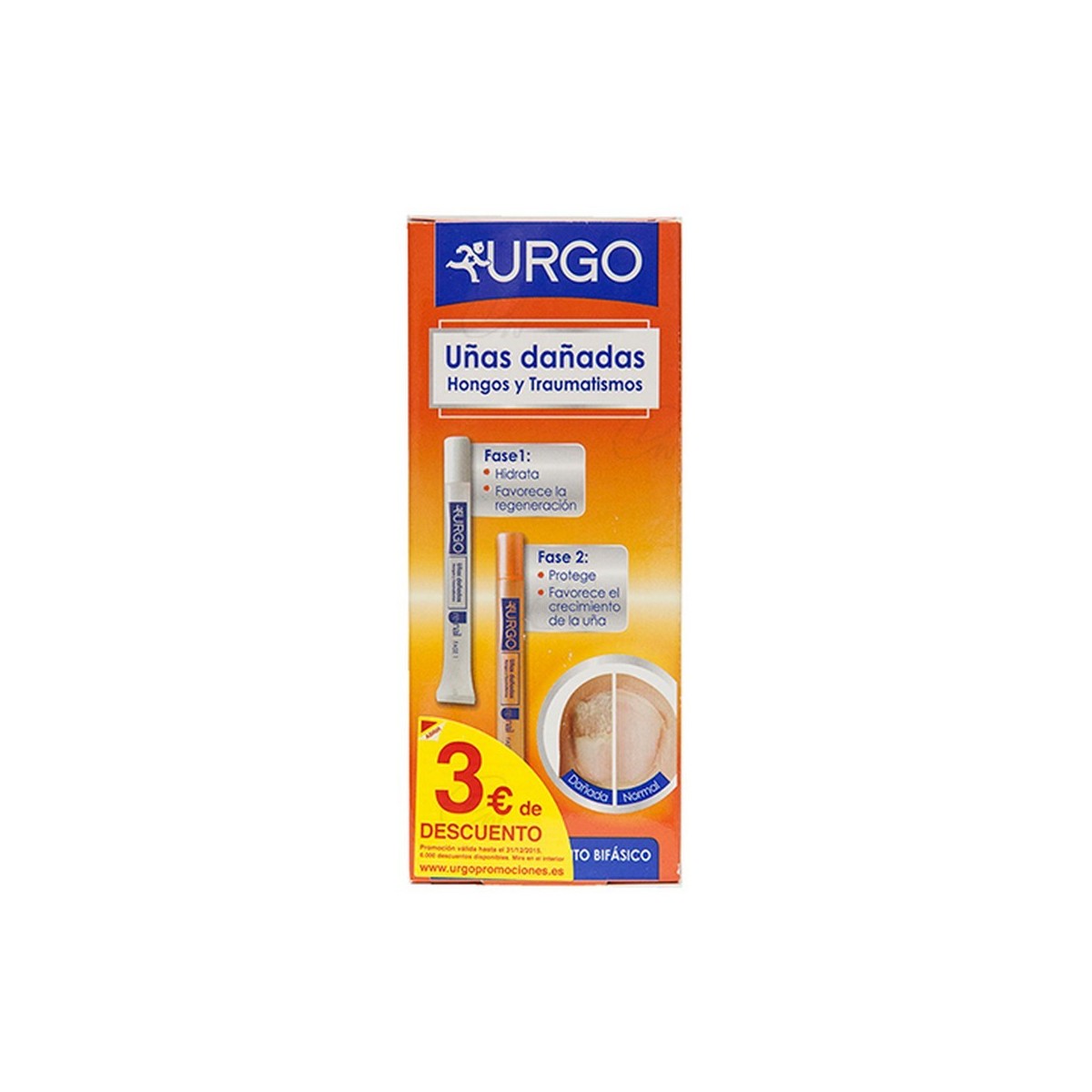 Fase 1: aplicar por la noche, tras haber limado las uñas. Utilizar durante 2 meses, alternando ciclos de 15 días de tratamiento con ciclos de 15 días sin tratamiento.