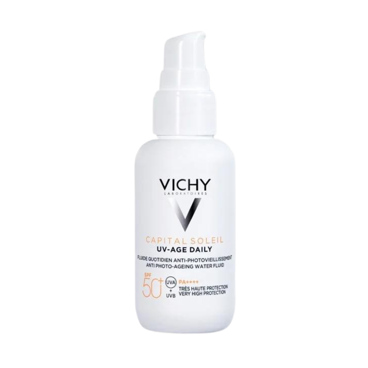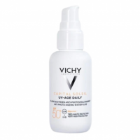 UV-Age Daily SPF50+ es un fluido antifotoenvejecimiento de Vichy. Su tecnología Netlock multipatentada forma una película protectora contra los rayos UV ultrafina, ultrarresistente e invisible para una alta protección contra los rayos UVA y UVB, responsables de más de un 80% de los signos de envejecimiento.