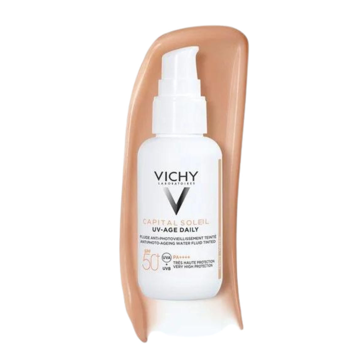 UV-Age Daily SPF50+ es un fluido antifotoenvejecimiento de Vichy. Su tecnología Netlock multipatentada forma una película protectora contra los rayos UV ultrafina, ultrarresistente e invisible para una alta protección contra los rayos UVA y UVB, responsables de más de un 80% de los signos de envejecimiento.