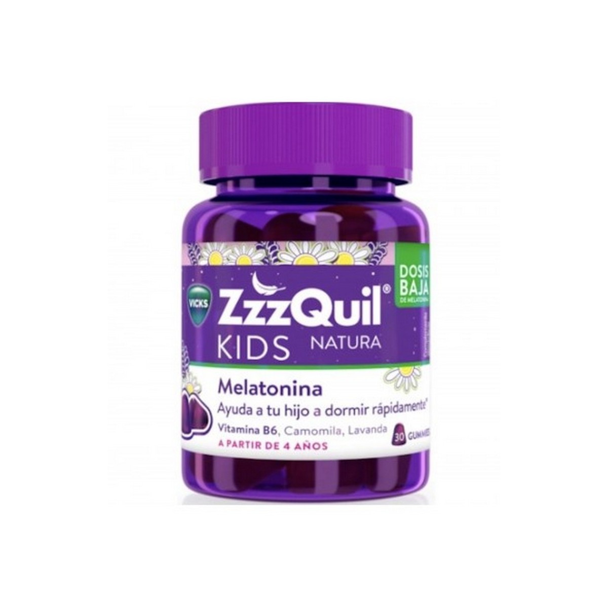 Cada gominola de ZzzQuil Kids contiene una baja dosis de melatonina (0,5mg) y una mezcla de lavanda y camomila que contribuyen a regular el funcionamiento del sistema nervioso y disminuye el tiempo necesario para conciliar el sueño.